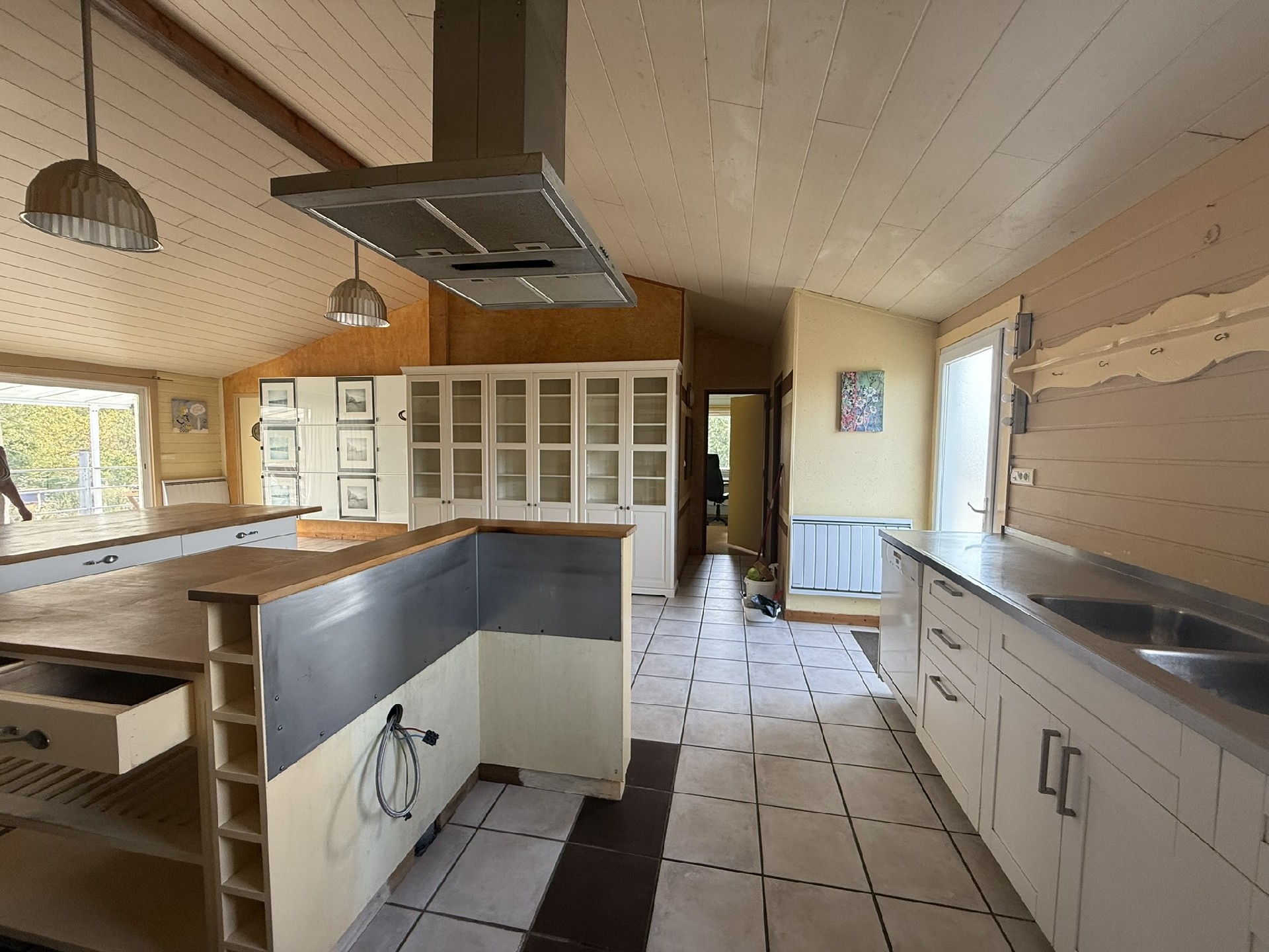 uitstekend potentieel voor dit rustige complex, gelegen in een gehucht op 2 km van bourcefranc-le-chapus en 3 km van het centrum van marennes. het complex bestaat uiteen gelijkvloerse woning met kelder, met een woonoppervlakte van circa 147 m2 en omvateen hal, een woonkamer met pelletkachel, een open keuken, een apart toilet met wastafel, een hal, een kleedkamer, twee slaapkamers, een badkamer met douche en bad en een tweede apart toilet met berging.een overdekt zwembad verwarmd door een warmtepomp en een sauna.een eerste, vrijstaande en niet-aangrenzende dependance, bestaande uit een woonkamer met keuken, een apart toilet, een douche en een berging. aangrenzend aan deze dependance bevindt zich een berging.vijf andere dependances, elk bestaande uit een slaapkamer, een badkamer en een apart toilet. een aparte gedeelde keuken. vrijstaand is er een garage van circa 53 m2 met een kantoorruimte en twee parkeerplaatsen buiten.grote tuin met boomgaard en kas (glazen dak) van circa 4.000 m2.renovatie gewenst, ideaal voor b et b of gite.