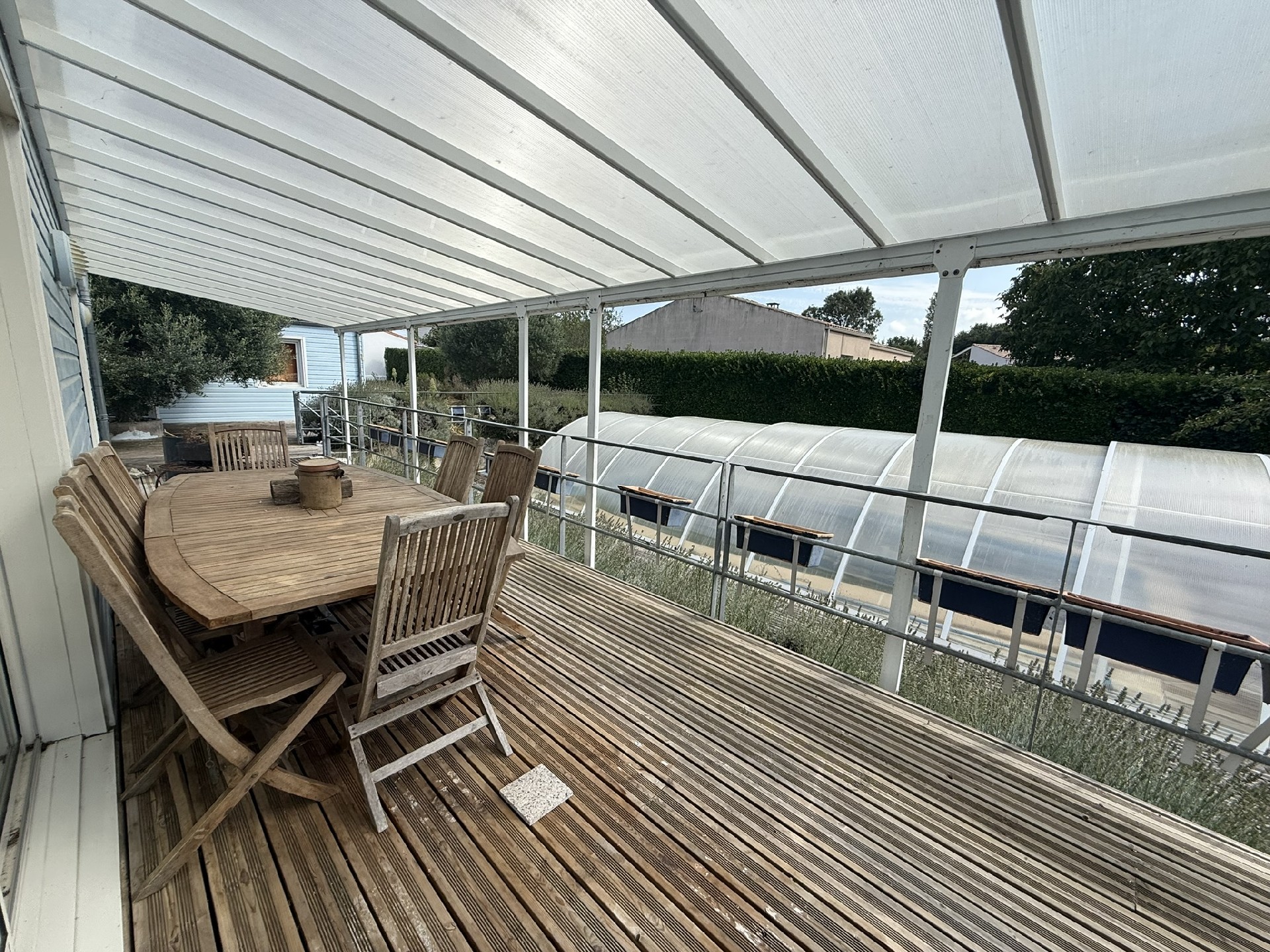 great potential for this quiet property complex, located in a hamlet 2 km from bourcefranc-le-chapus and 3 km from the center of marennes, comprisinga single-story, timber-framed house with a basement, offering approximately 147 m2 of living space and comprisingan entrance hall, a living room with a pellet stove, an open kitchen, a separate toilet with a washbasin, a hallway, a dressing room, two bedrooms, a bathroom with a shower and bathtub, and a second separate toilet with a closet.an indoor swimming pool heated by a heat pump and a sauna.a first, detached and non-communicating annex, comprising a living room with a kitchen, a separate toilet, a shower, and a closet. a storage room adjoins this annex.five other annexes, each comprising a bedroom, a bathroom, and a separate toilet. a separate shared kitchen. detached, there s a garage of approximately 53 m2 with an office area and two outdoor parking spaces.large garden with an orchard and greenhouse (glass roof) of approximately 4,000 m2.renovation required, ideal for b et b or gite.